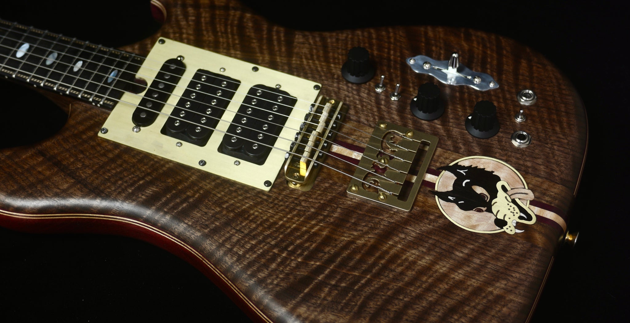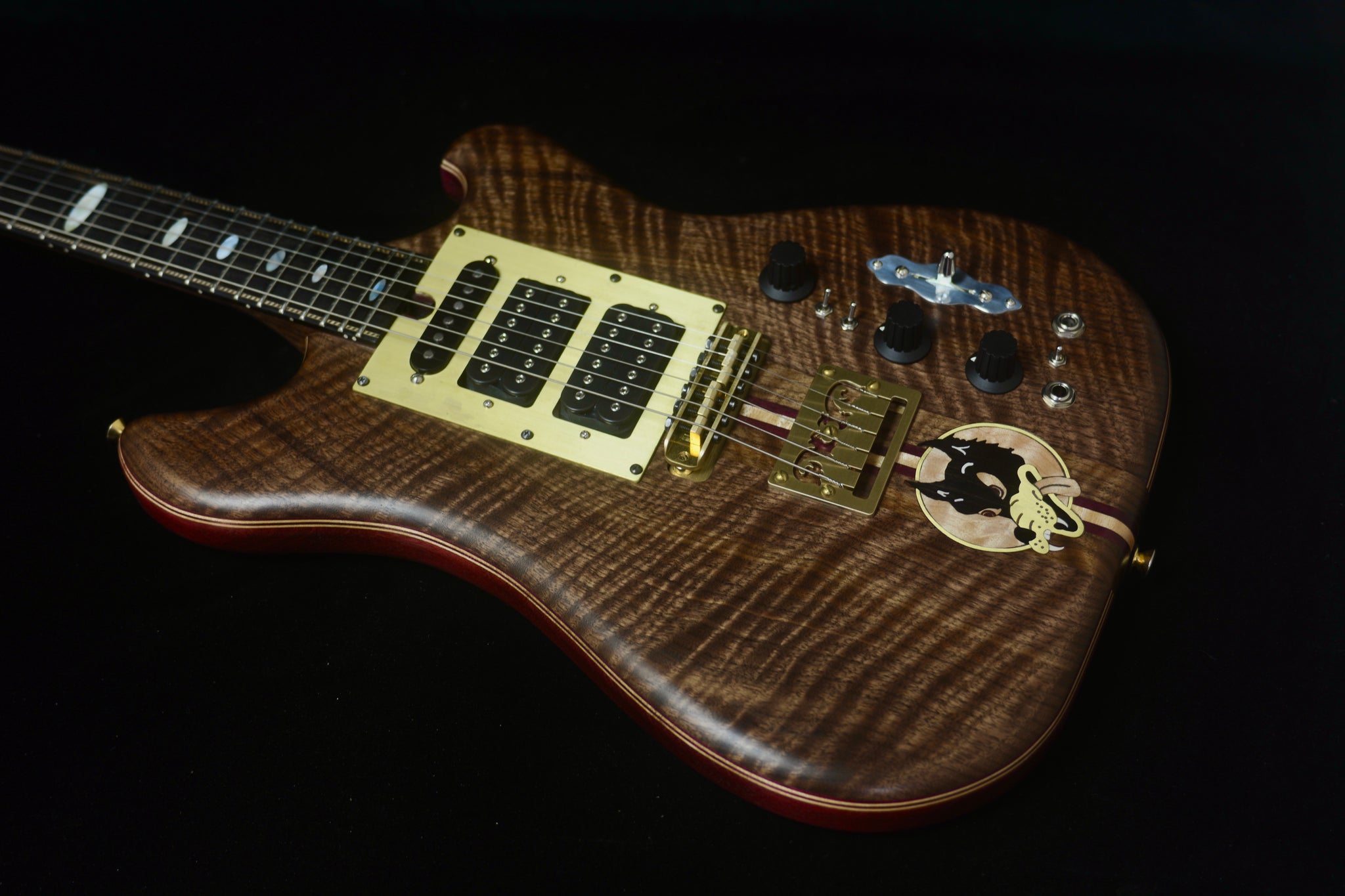 Triple single coil, OBEL system with source follower buffer, Eagle headstock inlay, updated Wolf inlay