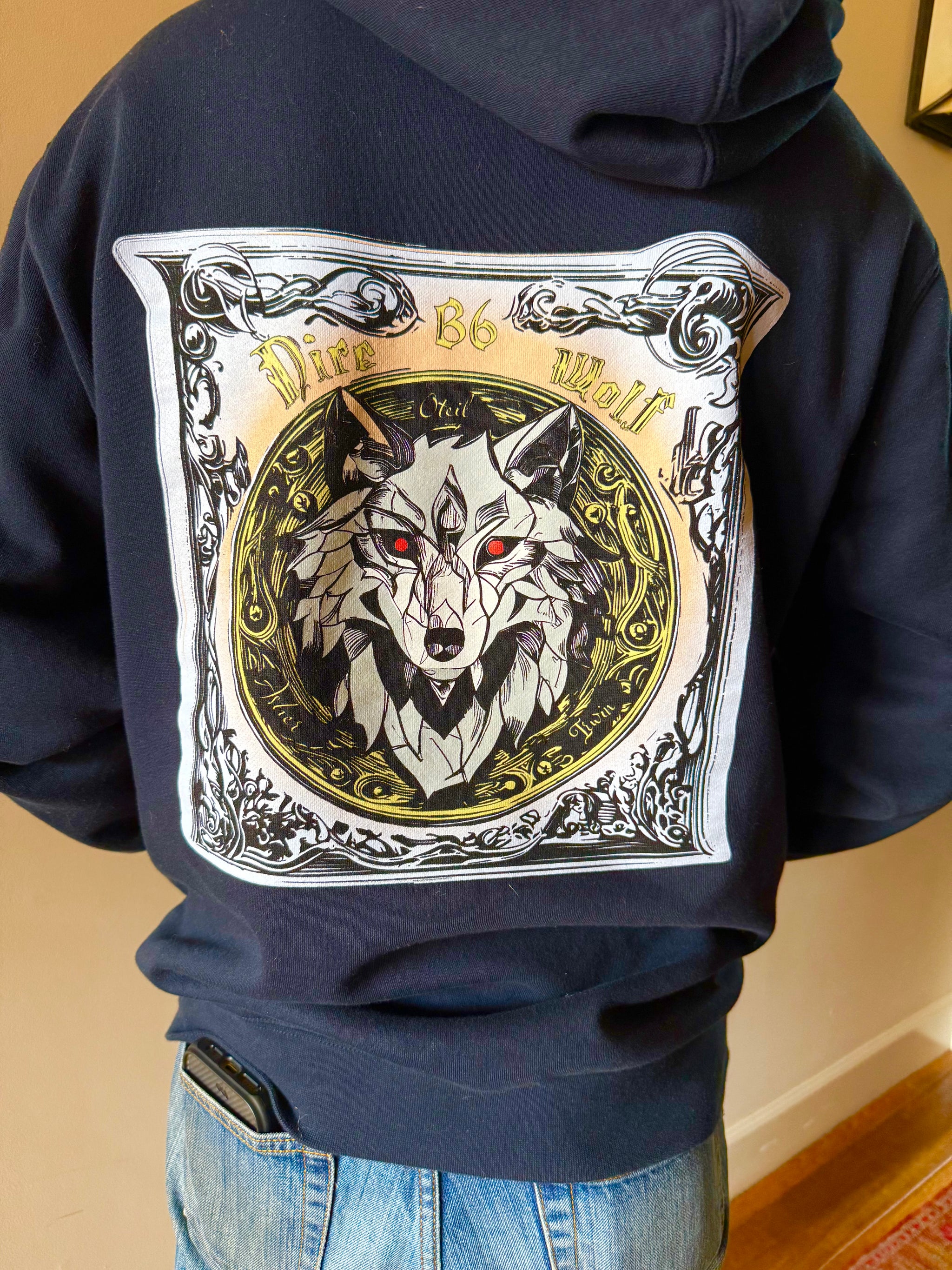 This hoodie features artwork inspired by the iconic inlay of the Dire Wolf bass, crafted by Bill Asher and Doug Irwin. The Dire Wolf guitar medallion inlay design, created by Jenny Shuman and Jessica Asher, honors the legacy of Jerry Garcia’s original Wolf guitar. Now carried on stage by Oteil Burbridge of Dead & Company, the historic bass—and this design—celebrate a lasting symbol of music history and artistry.